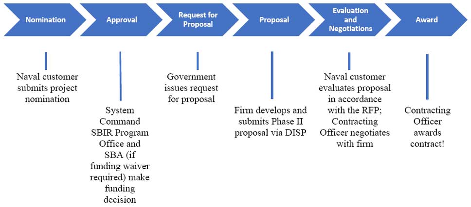 Eligible small business concerns and projects may be nominated by a Naval customer at any time and are approved based on priority of Naval need, availability of SBIR funding, and potential of additional non-SBIR funding.